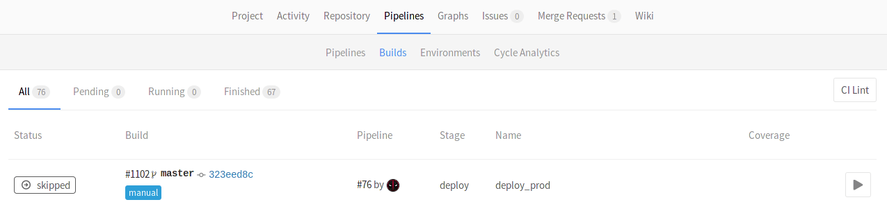 We now have a full development cycle, where our app is tested, built, deployed as a Review app, deployed to a staging server once the merge request is merged, and finally manually deployed to the production server. What we just described is a single workflow, but imagine tens of developers working on a project at the same time. They each push to their branches, and dynamic environments are created all the time. In that case, we probably need to do some clean up. Read next how environments can be stopped.