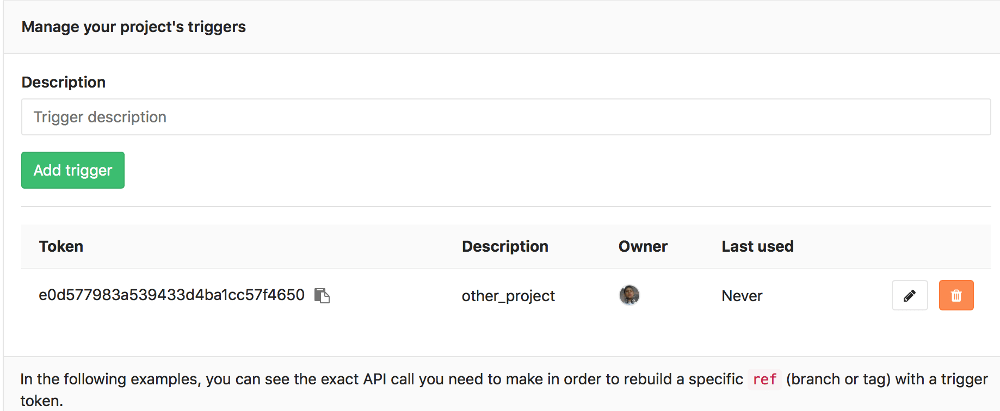 you have two projects, A and B, and you want to trigger a rebuild on the master