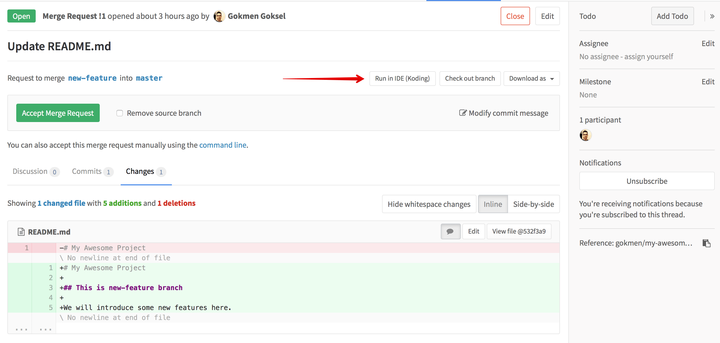This document will guide you through using Koding integration on GitLab in detail. For configuring and installing please follow the administrator guide.