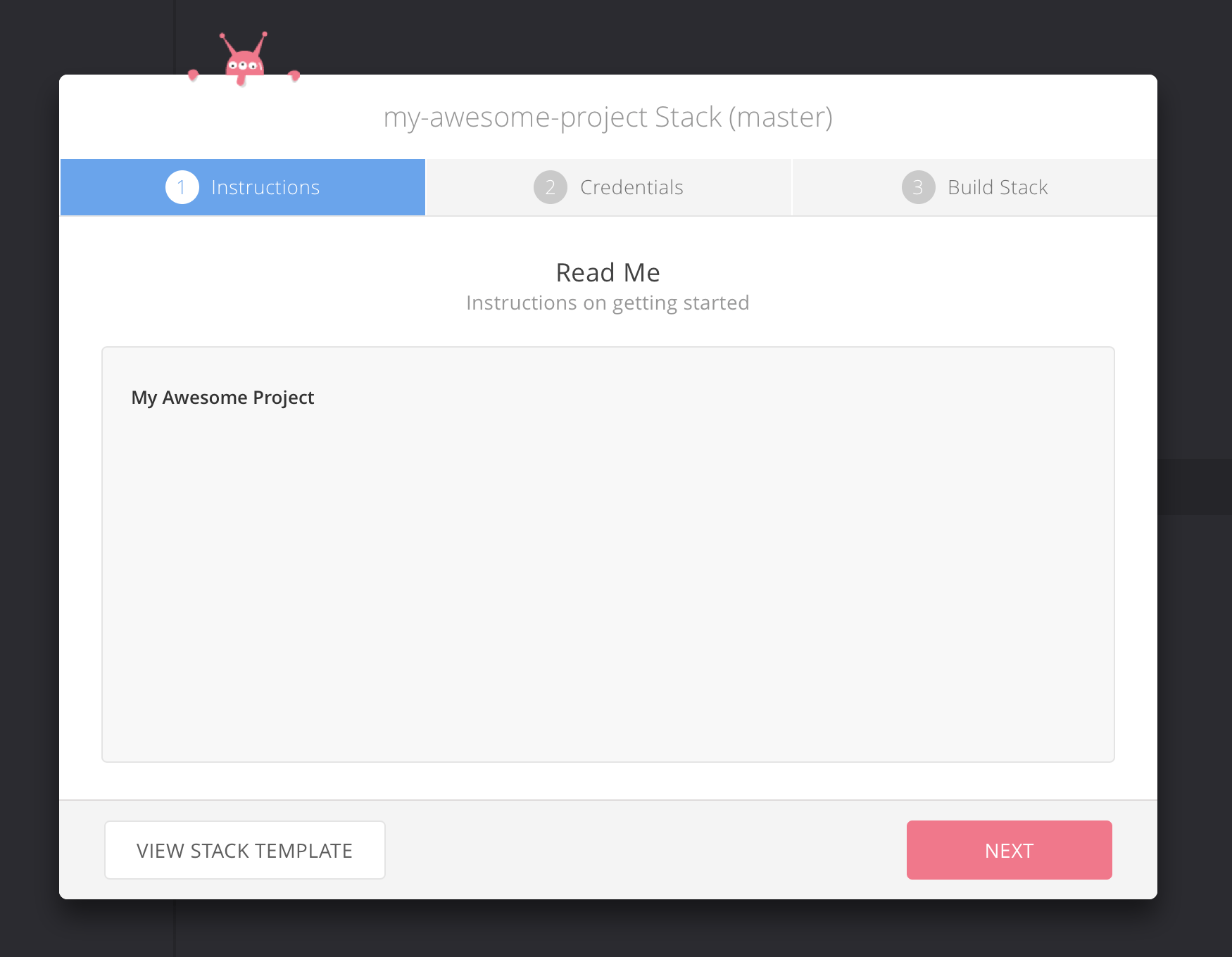 This will again take you to Koding with proper arguments passed, which will allow Koding to modify the stack template provided by target branch. You can see the difference;