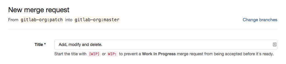 To mark a merge request a Work In Progress, simply start its title with [WIP]